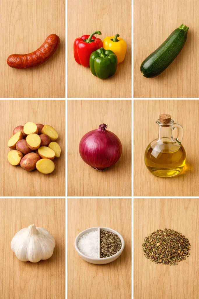 Second, this recipe is ridiculously flexible. Hate zucchini? Cool, don’t invite it. Obsessed with bell peppers? Throw in five. The sausage brings the flavor, the veggies soak it all up, and everyone wins.