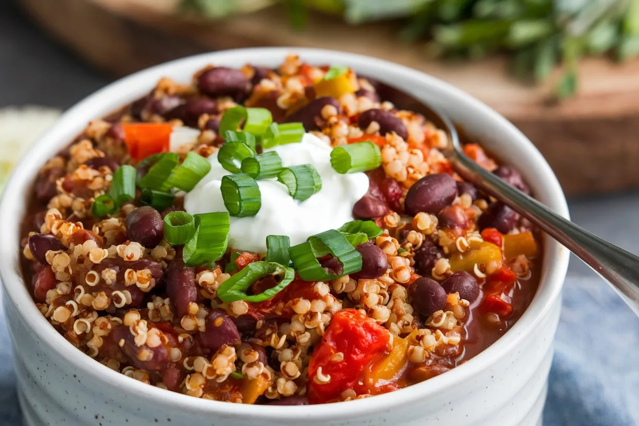 Quinoa and Black Bean Chili is a hearty, wholesome one-pot meal that comes together in just 40 minutes, making it perfect for busy weeknights. Packed with plant-based protein, warming spices and rich tomato flavor, this chili is filling, comforting and deeply satisfying without feeling heavy. It’s a modern, nutritious twist on classic chili that works for vegans, vegetarians and meat-eaters alike.