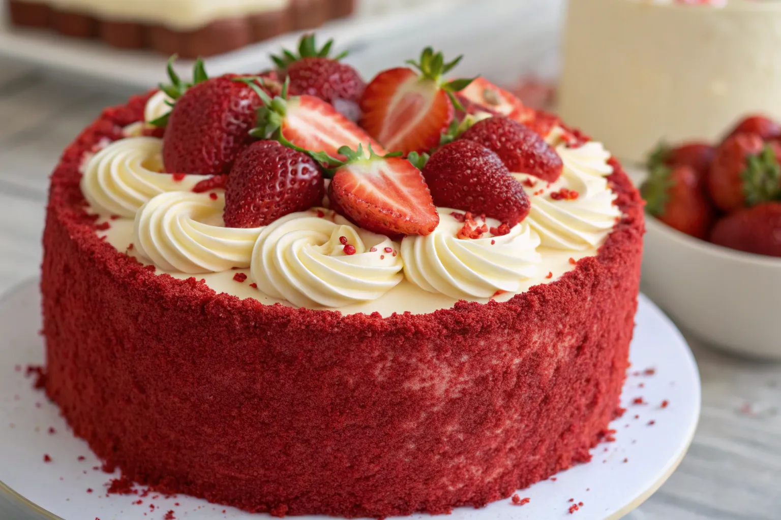 Red Velvet Strawberry Cake is the ultimate dessert for special occasions. With its bold red layers, creamy frosting, and juicy strawberries, it strikes the perfect balance between indulgent and refreshing. Whether you’re celebrating Valentine’s Day, a birthday, or just want to impress your guests, this cake is as beautiful as it is delicious.