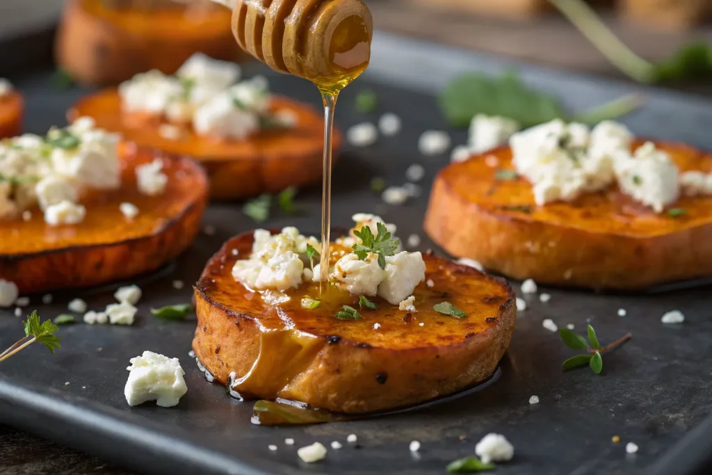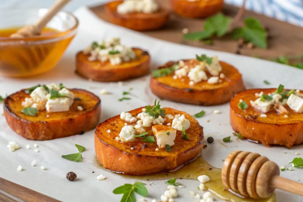 This recipe uses just a handful of ingredients but delivers a gourmet flavor. It’s naturally gluten-free, easy to prepare, and a crowd-pleaser for both kids and adults. The combination of roasted sweet potatoes, tangy feta, and sweet honey creates a mouthwatering bite that’s perfect for any occasion.