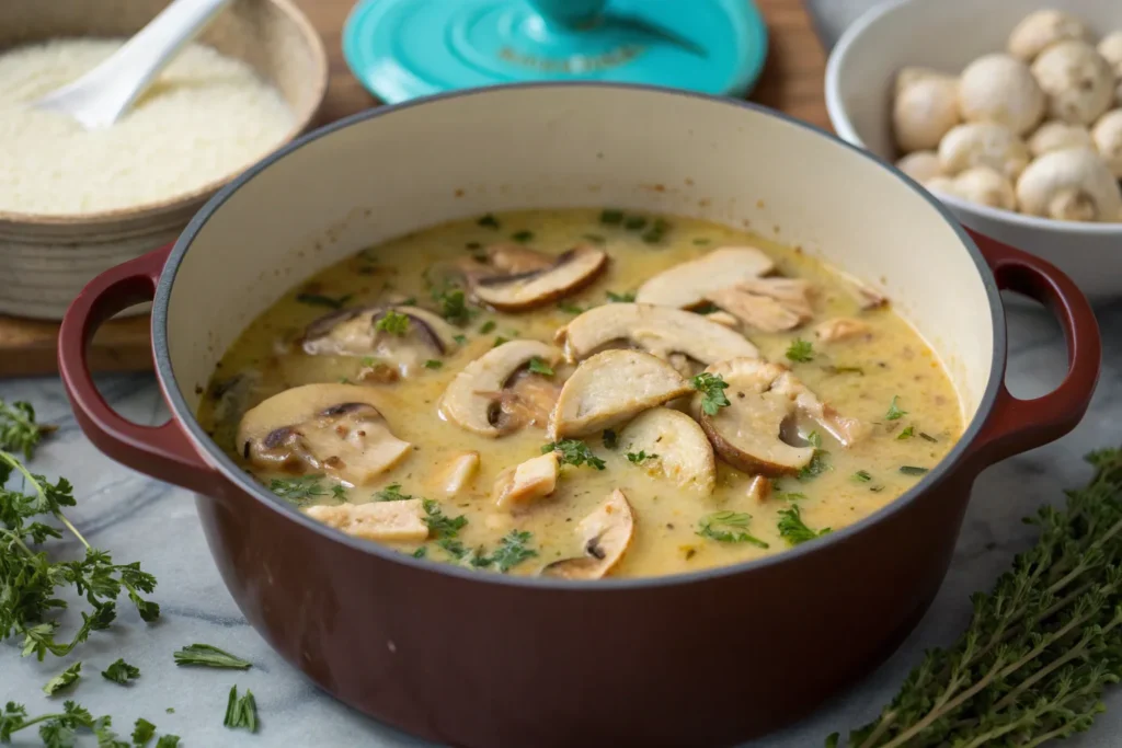 Add sliced mushrooms and sauté until golden brown and tender, about 5–7 minutes. - Thicken the Broth (Optional):