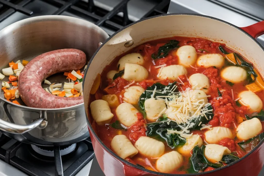 Do not overcook the gnocchi, as it softens quickly. Add it near the end of cooking for best texture. Browning the sausage well enhances flavor and prevents a bland broth. Adding tomato paste creates richness without overpowering the creamy base.