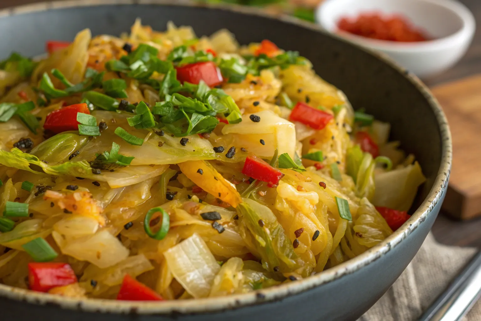 Savory Jamaican cabbage is lightly sweet, gently spiced, and aromatic. The cabbage becomes tender while retaining a slight crunch, complemented by soft carrots and peppers. Thyme and allspice add earthy warmth, while Scotch bonnet provides optional heat for a true Caribbean kick.