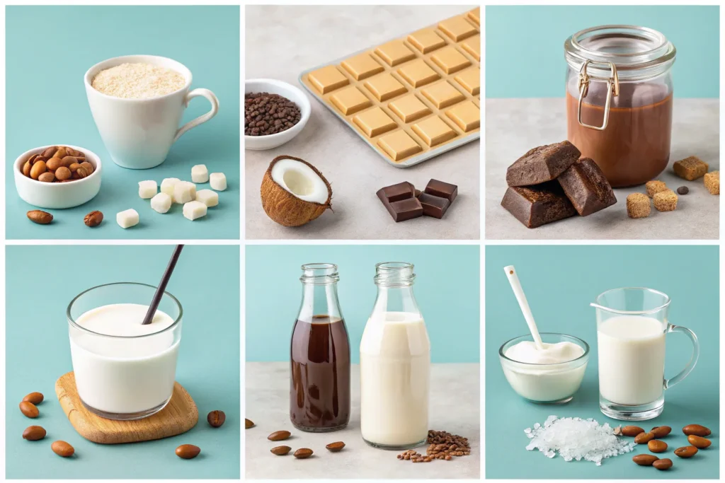 In a shaker or mixing jar, combine coconut milk, almond milk, white chocolate syrup, and vanilla extract. Shake or stir well until fully blended and smooth.