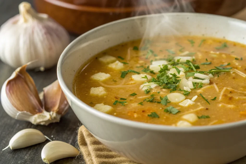 Sopa de Ajo, or Spanish Garlic Soup, is a rustic and deeply comforting dish that comes from the heart of traditional Spanish cuisine. Made with simple pantry staples like garlic, olive oil, bread, paprika, and broth, this soup proves that humble ingredients can create extraordinary flavor. Warm, fragrant, and nourishing, Sopa de Ajo is especially popular during colder months and is often enjoyed as a late-night or early-morning meal in Spain. Its bold garlic aroma and smoky paprika notes make it both soothing and invigorating.