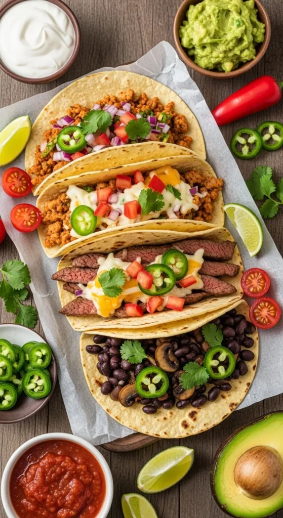 - Optional extras: sliced jalapeños, bell peppers, corn, hot sauce, fresh cilantro.