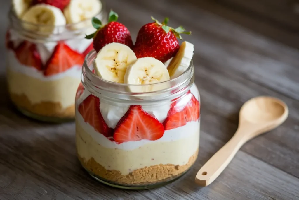 Strawberry Banana Pudding Cream comes together in about 15 minutes. Most of the time is spent slicing fruit and layering ingredients. Allowing it to chill for at least 30–60 minutes enhances the flavor and texture, but it can be served immediately if needed.