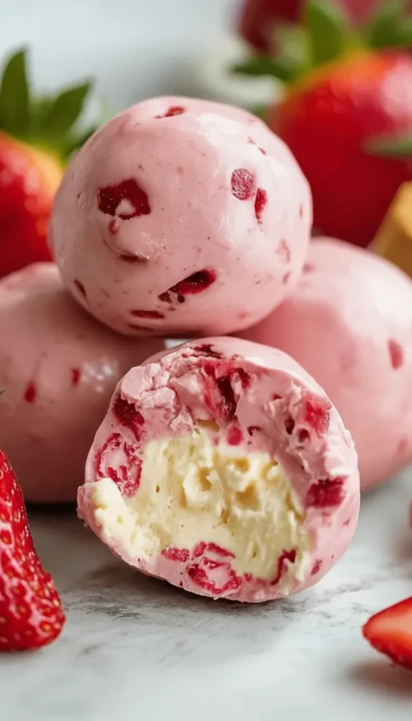 The idea came after watching my kids finish an entire cheesecake in one evening while I sat with a plain protein bar. That moment made me wonder why protein snacks always feel so boring. By using freeze-dried strawberry powder, the mixture gets a strong fruity flavor without becoming watery. Adding cream cheese is what truly transforms these into a cheesecake-inspired snack. Now my kids grab them before sports practice without even realizing they’re eating a protein-packed treat.