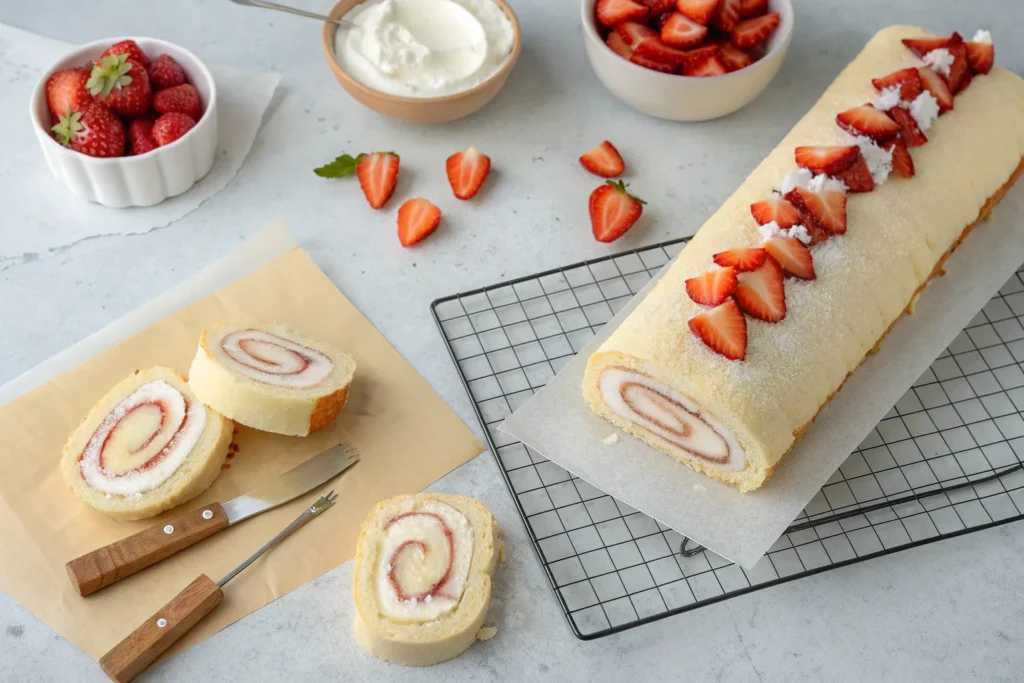 The key to a perfect roll is using thin, flexible cake that won’t crack when rolled. Avoid overfilling, which can cause the roll to burst open. Chilling the roll before slicing helps the cream firm up, ensuring clean, beautiful pieces that resemble sushi.
