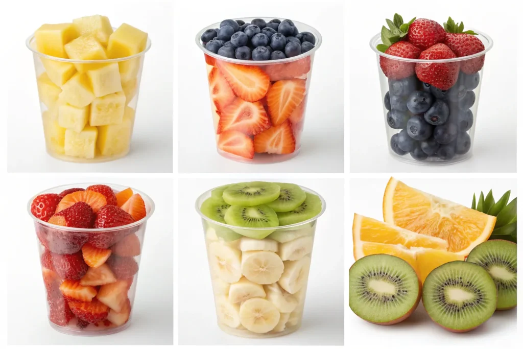 Citrus, berries, grapes, kiwi, pineapple, and mango all work well.