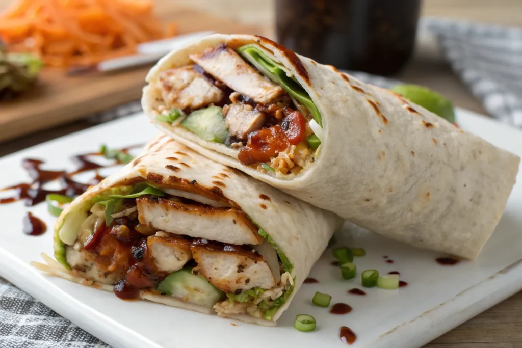 Teriyaki Chicken Wraps provide protein from chicken, fiber and vitamins from fresh vegetables, and a touch of carbohydrates from the tortilla. Using whole-grain wraps increases fiber content, and controlling the amount of teriyaki sauce can help manage sodium and sugar levels. Adding greens boosts nutrient density, making this a balanced, satisfying meal.