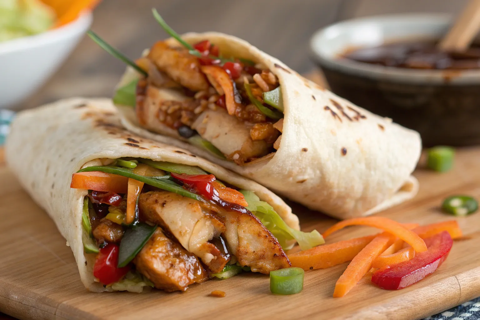 Teriyaki Chicken Wraps provide protein from chicken, fiber and vitamins from fresh vegetables, and a touch of carbohydrates from the tortilla. Using whole-grain wraps increases fiber content, and controlling the amount of teriyaki sauce can help manage sodium and sugar levels. Adding greens boosts nutrient density, making this a balanced, satisfying meal.