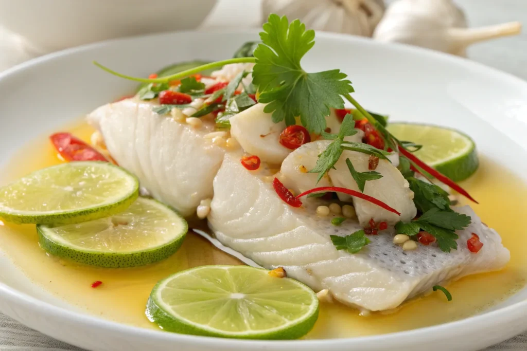 This recipe is quick, healthy, and packed with bright, bold flavors. Steaming keeps the fish tender and moist, while the lime-garlic sauce adds a refreshing kick. It’s naturally low in fat, gluten-free, and suitable for anyone seeking a light but satisfying seafood meal. The dish pairs beautifully with rice or steamed vegetables for a complete meal.