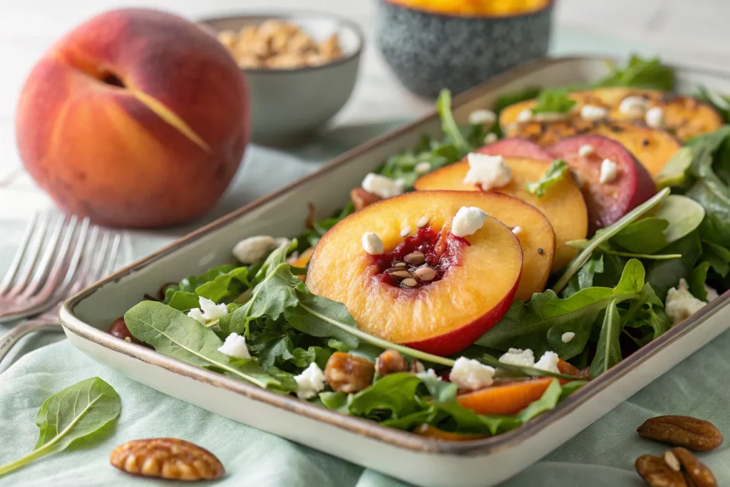 Yes! While fresh peaches are best for flavor and texture in summer, canned peaches (drained well) work great if fresh ones aren’t in season. Just avoid overly syrupy varieties to prevent the salad from becoming too sweet.
