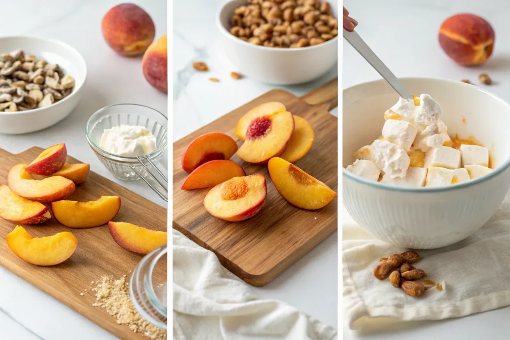 To make shopping easier, here’s everything you need in one place. Fresh peaches, creamy dairy, nuts, and a few pantry staples are all it takes. By keeping this short checklist in mind, you can pick up everything in a single store run. It also makes the recipe perfect for spontaneous entertaining when you want something quick yet impressive.