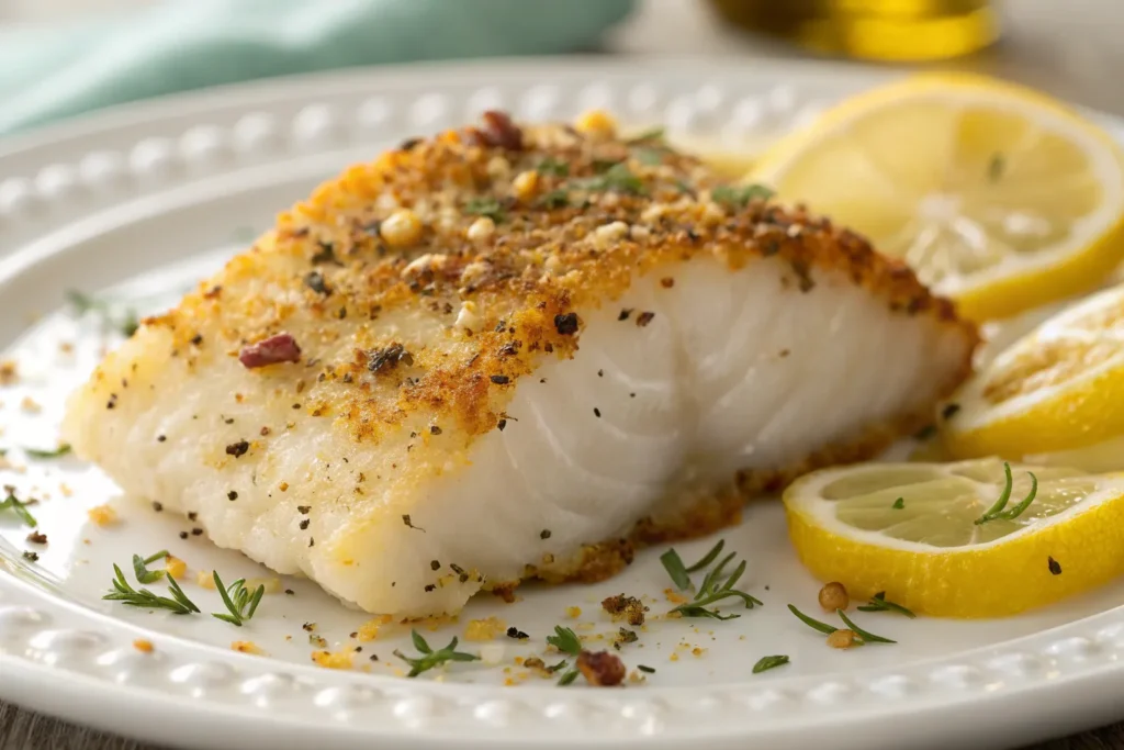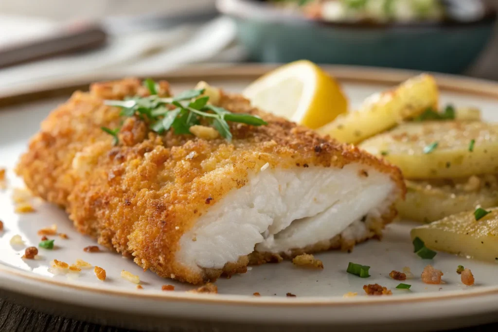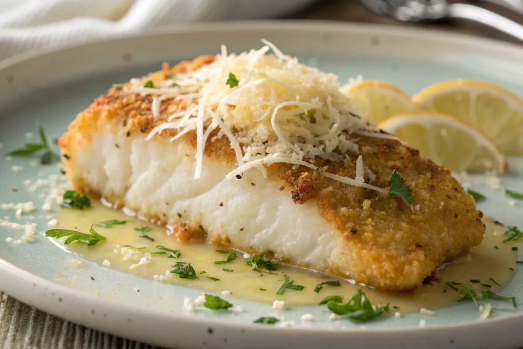 This recipe uses cod fillets, grated Parmesan cheese, breadcrumbs, garlic powder, parsley, salt, pepper, and oil for shallow frying. Combine Parmesan, breadcrumbs, garlic, and seasonings in a bowl. Coat the cod fillets evenly in the mixture. Heat oil in a pan and fry the fish gently until the coating is golden and the fish is tender. Serve immediately for the best texture and flavor.