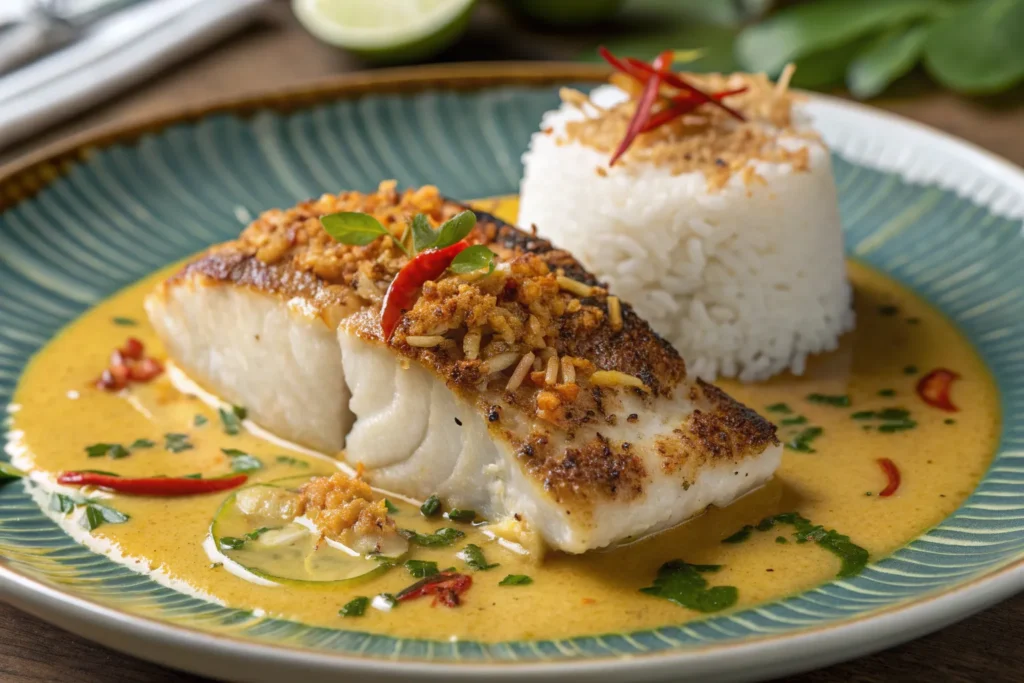 This tropical dish includes cod fillets, shredded coconut, breadcrumbs, flour, eggs, salt, and oil for frying. Dredge the cod in flour, dip in beaten eggs, then coat with a coconut and breadcrumb mixture. Fry until golden and crunchy. Serve with mango salsa or sweet chili sauce for a vibrant flavor contrast.