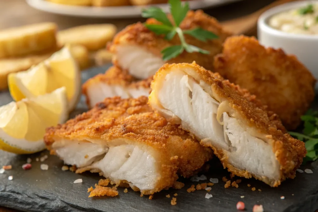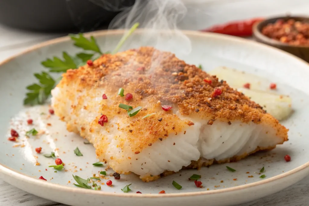 This bold recipe uses cod fillets, Cajun seasoning, flour, paprika, cayenne (optional), and oil for frying. Coat the cod evenly with seasoned flour, then fry in hot oil until crisp and deeply flavored. Serve with corn salad, rice, or a creamy dipping sauce to balance the spice.
