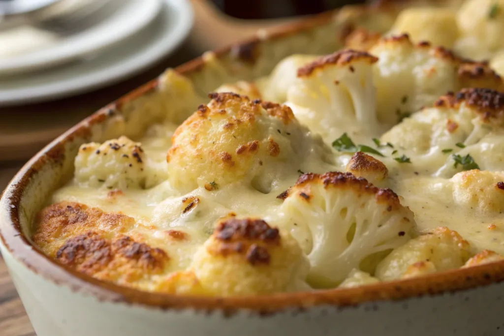 Swap traditional potato casseroles for this creamy, cheesy cauliflower alternative. Loaded with cheddar and cream cheese, it’s comfort food without the carbs.