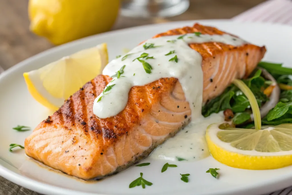 2. Grilled Salmon with Lemon Yogurt Sauce