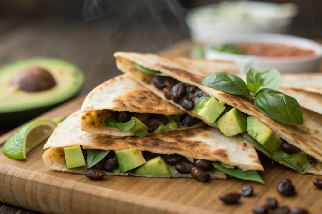 Vegan Black Bean Veggie Quesadilla with Avocado & Basil