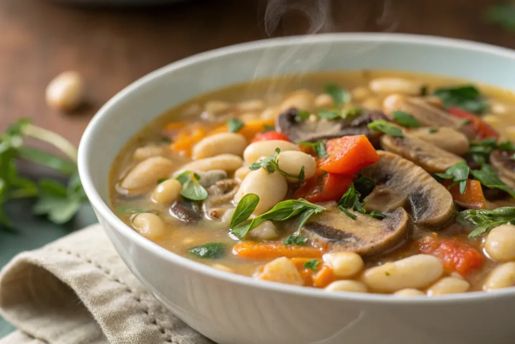 This White Bean Mushroom Stew is a deeply comforting and nourishing vegan dish ideal for cozy dinners. Creamy white beans and hearty mushrooms are simmered together with aromatics, herbs, and a rich broth to create a thick, satisfying stew. The beans provide plant-based protein and fiber, while mushrooms add depth and a meaty texture. It’s perfect served with crusty bread or over mashed potatoes for a wholesome, filling meal.