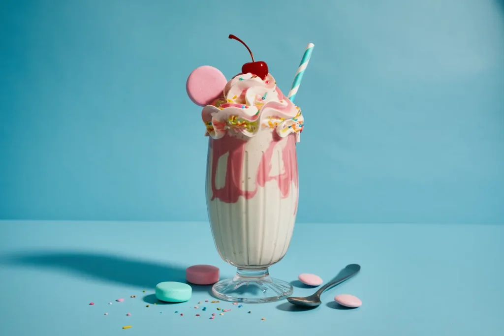 This pastel pink drink tastes just like bubblegum candy. Creamy, sweet, and nostalgic, it’s ideal for retro-themed parties, kids’ birthdays, or fun summer gatherings.
