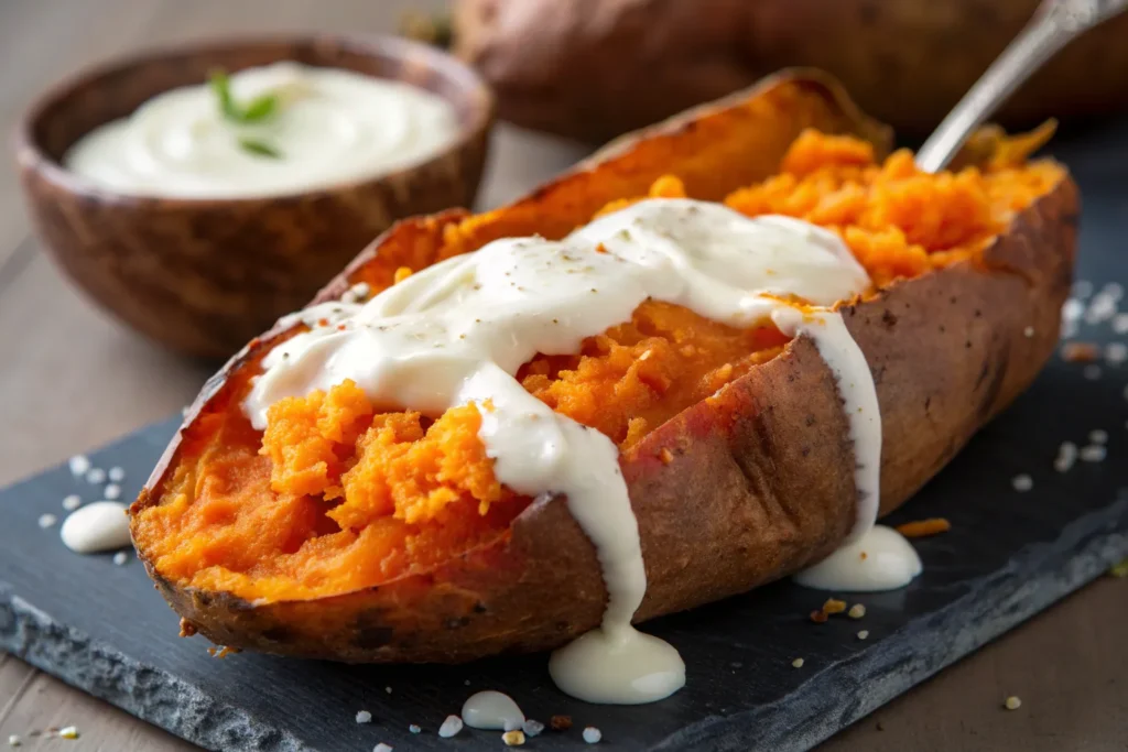 Baked sweet potatoes are rich in fiber and slow‑digesting carbohydrates, making them a smart dinner choice. When topped with a spoon of Greek yogurt and herbs instead of butter, they become creamy and flavorful without excess calories. This meal is simple, comforting, and ideal for clean eating during weight loss.
