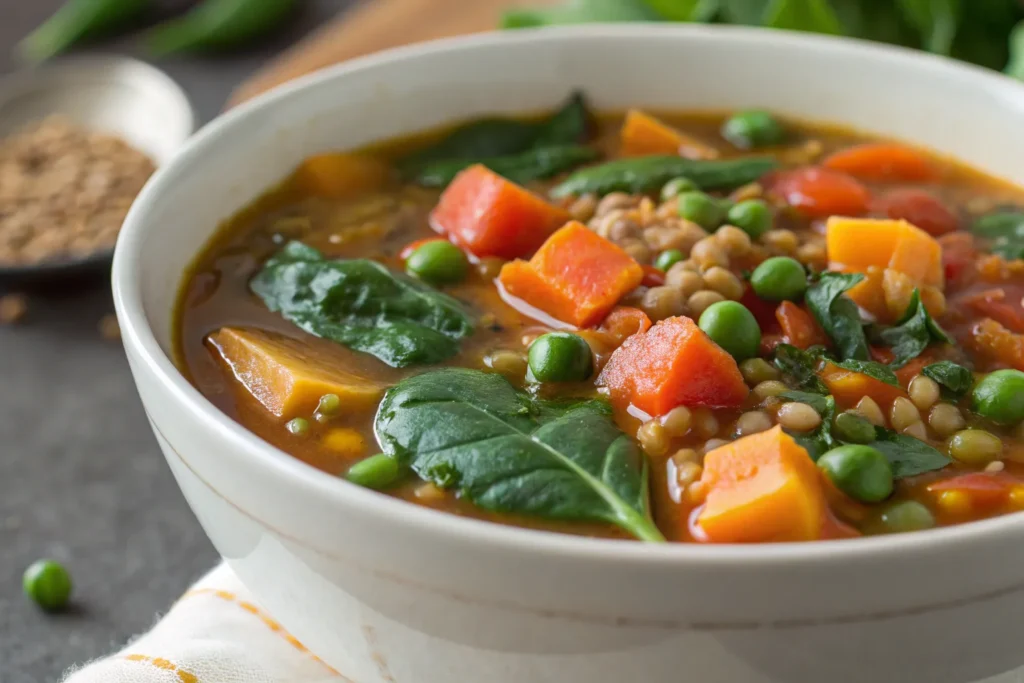 Lentil and vegetable soup is a comforting, high‑fiber dinner that supports weight loss. Lentils are rich in plant‑based protein and help stabilize blood sugar levels. When combined with vegetables like carrots, celery, and tomatoes, the soup becomes nutrient‑dense and filling. Warm soups are especially effective for appetite control, making this an excellent evening meal.