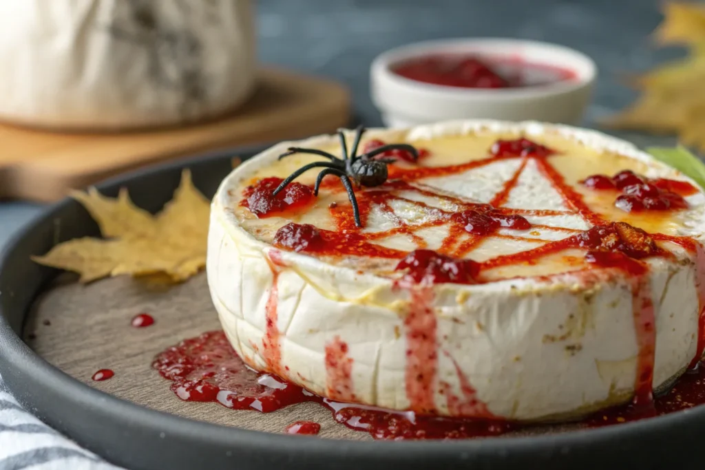 Check the full baked brie recipe in complete Halloween recipe.