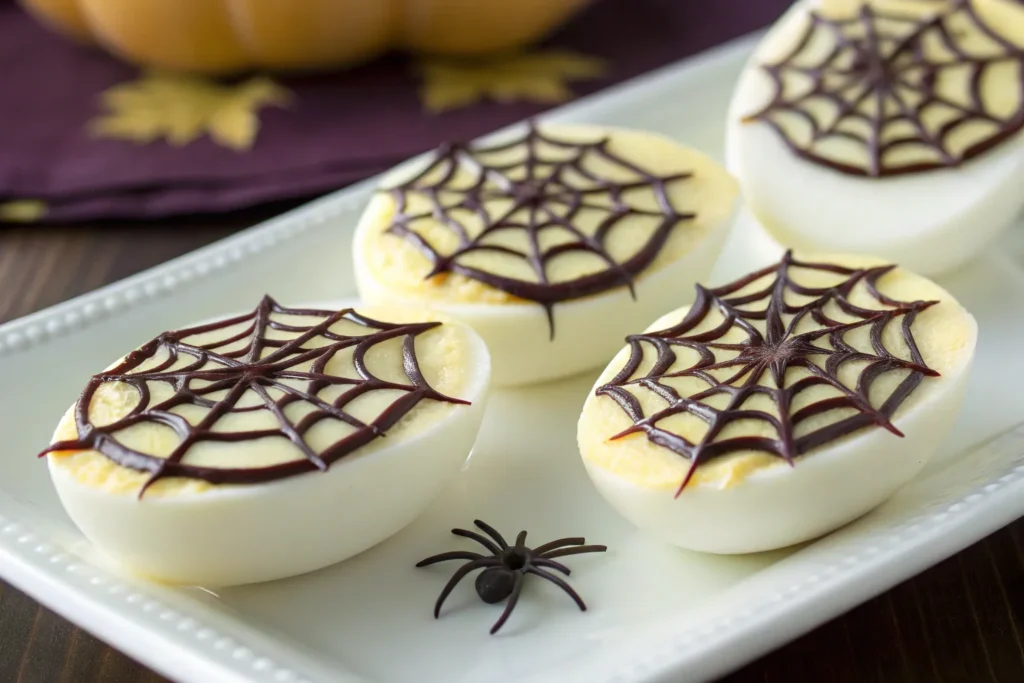 Find the complete Spiderweb Deviled Eggs recipe in the Halloween party food collection for full details.