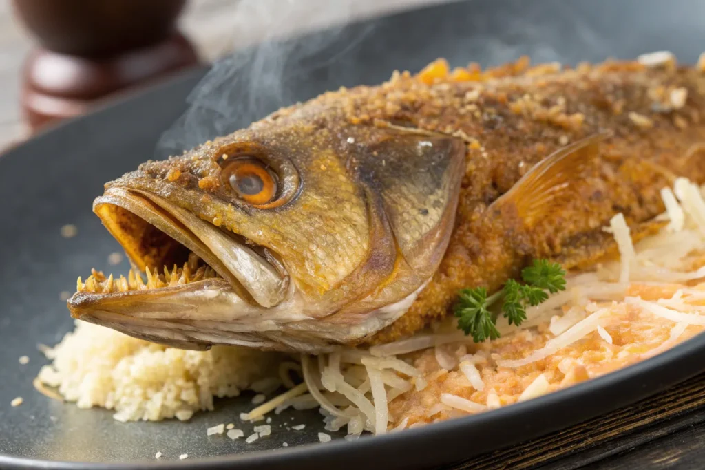 Crispy fried yellow croaker is a favorite street-style and home-style dish. The fish is lightly coated in flour or cornstarch and fried until crunchy on the outside while remaining juicy inside. This method adds texture without overpowering the fish’s mild taste. It is especially popular as a comfort food and can be served with chili sauce, garlic dip, or a squeeze of lime for extra flavor.