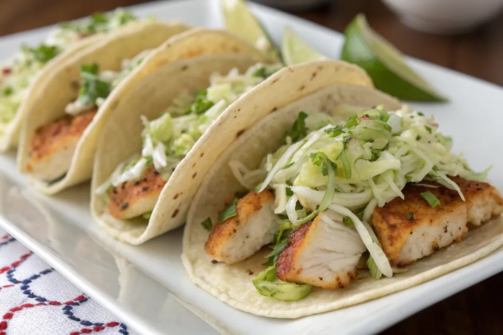 A fresh twist using seasoned, lightly sautéed sole wrapped in tortillas with crunchy lime slaw. It’s lighter than typical fish tacos while still full of flavor and texture.