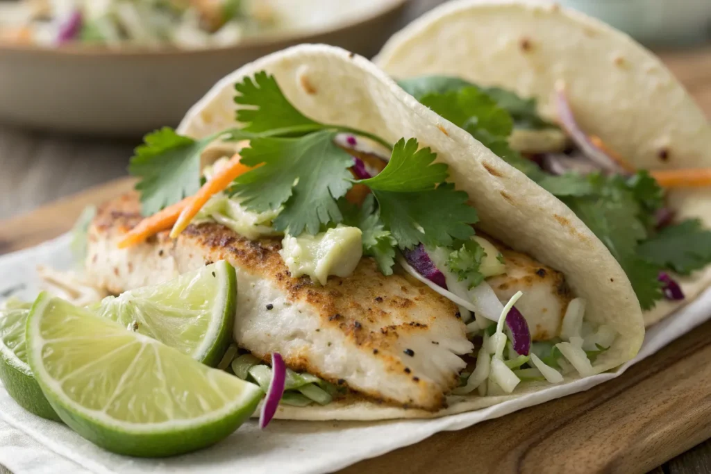 3. Walleye Fish Tacos with Cilantro Lime Slaw