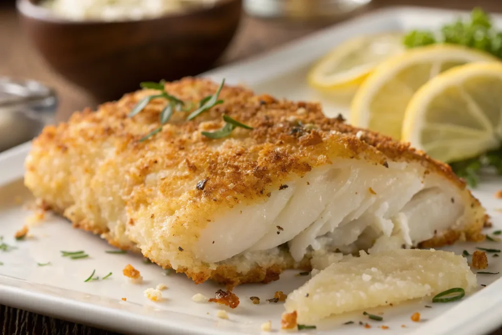 Fillets are coated with a mixture of grated Parmesan, breadcrumbs, garlic, and parsley, then baked for a crispy, cheesy crust. This adds a gourmet touch while still staying easy to prepare.