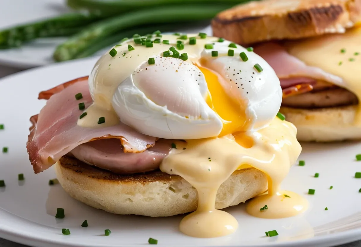 - Toast Muffins & Assemble: Toast English muffins, layer with ham or smoked salmon, place a poached egg on top, and drizzle with hollandaise.