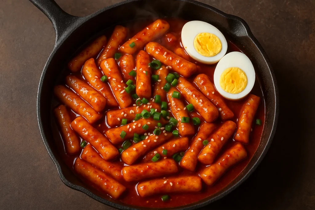 5. Add rice cakes and simmer for 8–10 minutes, stirring often, until sauce thickens and rice cakes are tender.