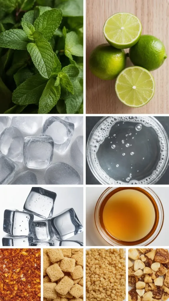- Fresh mint leaves (10–12 per glass) – The fresher, the fancier. Brownish ones? Nah, toss ‘em.