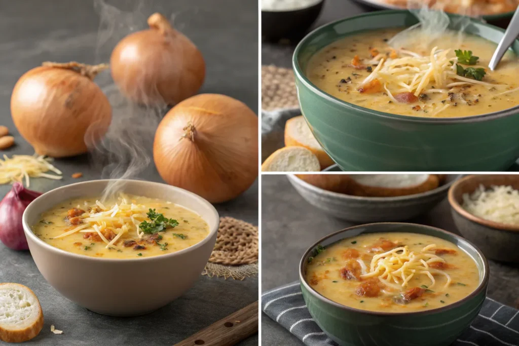 This soup is pure comfort in a bowl—creamy, cheesy, and packed with the sweet flavor of slow-cooked onions. It’s hearty enough to serve as a main course and elegant enough to impress guests. The combination of melted cheese, buttery onions, and rich broth creates a luxurious texture and taste that’s both familiar and special.