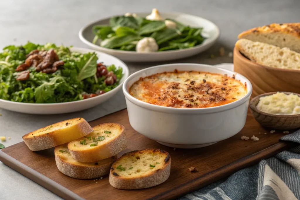 Crusty bread, garlic toast, or a green salad make excellent companions. It also pairs beautifully with grilled meats or roasted vegetables.