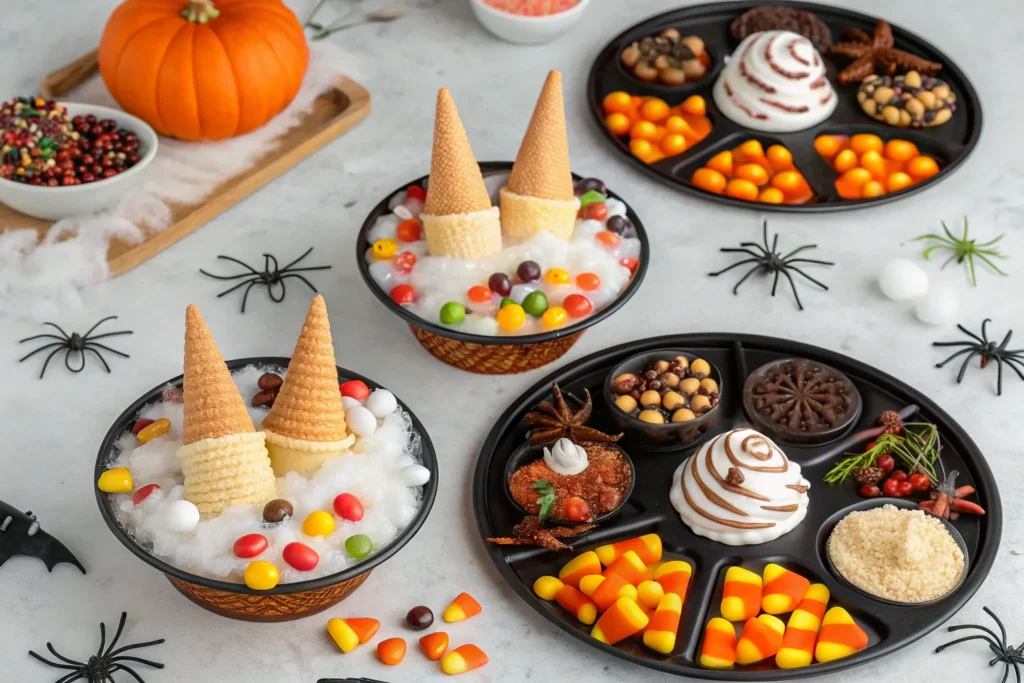 Dust cocoa powder or black edible shimmer around the cones for a “sooty” enchanted look. Add edible sugar eyes peeking from inside the cone for a mischievous twist. For added elegance, drizzle white chocolate webs across the hats.